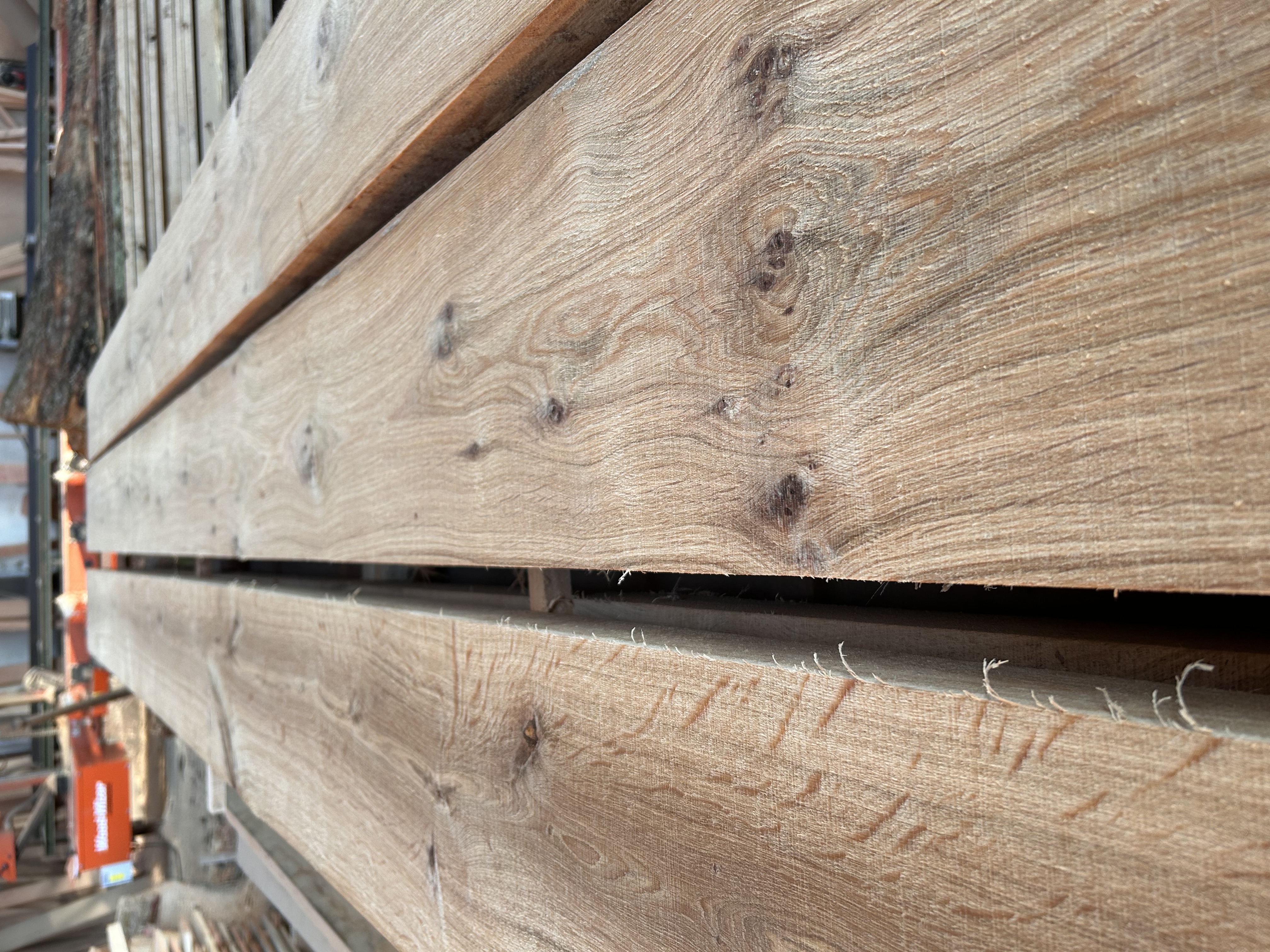Aktuell haben wir einen größeren Posten Eichenbohlen 6cm stark in sehr schöner Qualität.